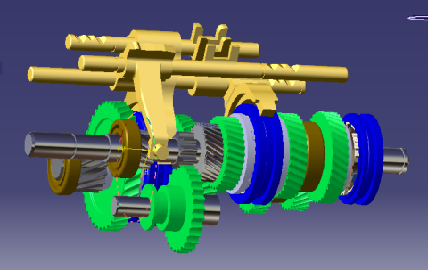 本课题的主要内容与以往的变速器设计有所不同,主要体现在两个字上“反求”,而反求不仅仅体现在变速器的接口上,适合C51变速器的车型一定适用于本课题设计的变速器,在绘制装配图上体现,还有是结构上,再设计的过程选择了更为合理清湛的方案:比如倒档的布置形式,充分的利用一二档同步器的啮合套,在满足工艺要求的前提下,将倒档的输出齿轮和一二档同步器的啮合套做成一体,大大的节省了轴向的尺寸,也很大程度的降低成本,因为之前有为期两周的测绘过程,将原有的变速器尺寸测绘的非常的仔细,通过CATIA的实体建模,将C51变速器形状尺寸清晰的呈现在电脑上,并且以三维的形式直观表达,一是可以帮助绘制二维的装配图,二是可以直接的看到零件之间的距离和相对位置关系,CATIA建立的模型最后是进行碰撞分析,对于一些由于测量造成的干涉可以忽略,但是由于设计的不合理带来的问题值得关注,再设计时是一个很好的借鉴,由于三维的模型,本设计避开了很多次要的问题,同时把大部分的时间用来分析、更正重要的问题。