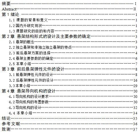 [关键词:矿用越野车,悬架系统] [热度 ]| 提示:此毕业设计论文完整版包含【开题报告,论文,CAD图纸】 作品编号:clgc0268,word全文:40页,合计:14000字 |