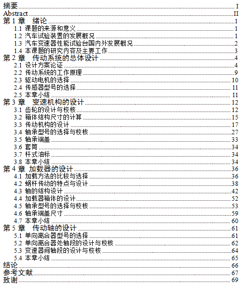 本车辆工程毕业设计论文作品由 毕业论文设计参考 [http://www.qflunwen.com] 征集整理——汽车变速器性能试验台的设计(开题报告,论文,CAD图纸)!