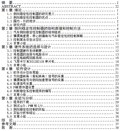 [关键词:侧向稳定性,控制器] [热度 ]| 提示:此毕业设计论文完整版包含【开题报告,论文,CAD图纸】 作品编号:clgc0280,word全文:42页,合计:14000字 |