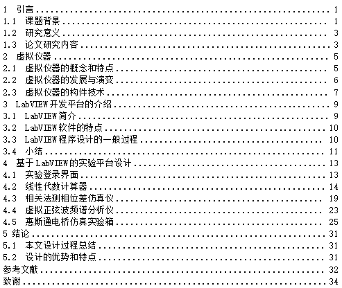 [关键词:labview,实验平台] [热度 ]| 提示:此毕业设计论文完整版包含【开题报告,任务书,论文】 作品编号:ckjs0231,word全文:38页,合计:15000字 |