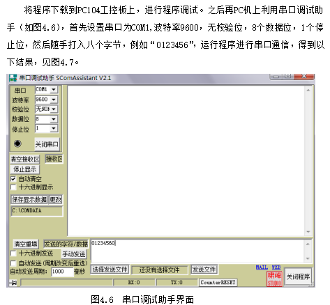 第四章,介绍了改信号发生器的软件设计与实现,主要包括PC104的串口通信部分的实现,还有波形产生程序的和定时发送数据程序设计。