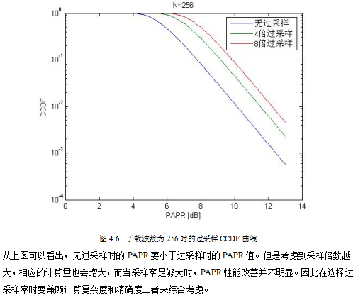 本文重点介绍的选择映射法,先从理论上分析,经推导得出选择映射法可以有效降低OFDM系统的PAPR,后经仿真验证,SLM的确可以降低系统的PAPR,并且随着仿真数据的增加,得到的仿真曲线越来越逼近理论的曲线。但是逼近理论曲线的速度却越来越慢,到增大到一定程度时,几乎得到一样的PAPR分布曲线,但是计算的复杂度却是成指数倍的上升。所以得出SLM降低PAPR是以增加系统计算复杂度为代价的这个结论。计算的复杂度增加也意味着实际系统实现的难度也将增加,成本也相应的增加。所以,在实际考虑的时候,必须要折中考虑系统PAPR性能和系统复杂度。只有选择合适的向量数,才能使系统达到最优化!