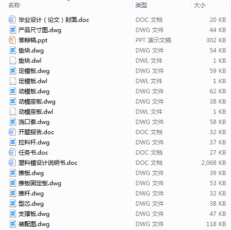 3、注射模具的推出机构(包括推杆、复位杆、推杆固定板、推板、主流道拉料杆等)的设计。