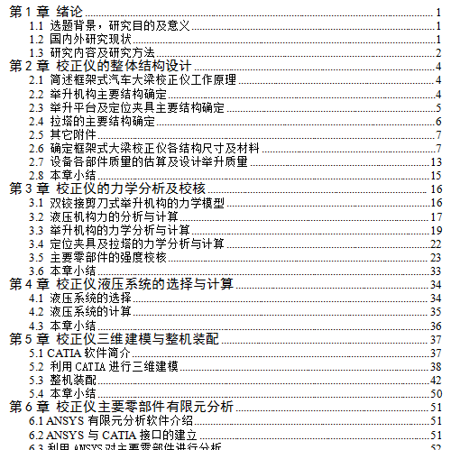 本车辆工程毕业设计论文作品由 毕业论文设计参考 [http://www.qflunwen.com] 征集整理——基于ANSYS的框架式汽车大梁校正仪设计(开题报告,论文,CAD图纸)!