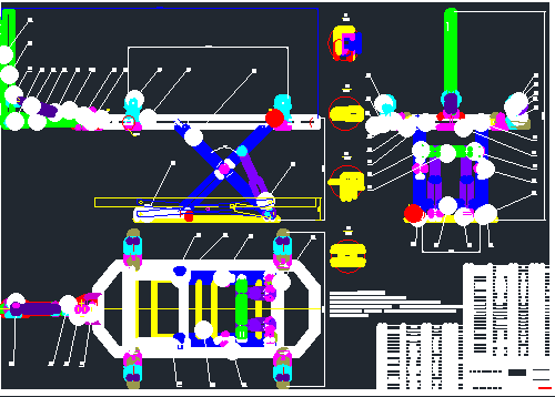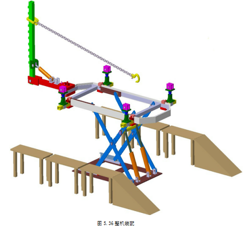 (1)通过计算举升机构、定位夹具、拉塔结构及上下平台的尺寸,然后画出二维结构装配图及零件图;