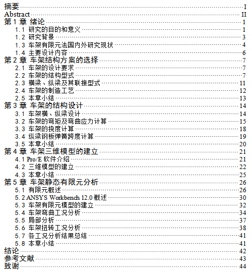 本车辆工程毕业设计论文作品由 毕业论文设计参考 [http://www.qflunwen.com] 征集整理——基于ProE及ANSYS的轻型载货汽车车架结构设计与静力学分析(开题报告,论文,CAD图纸)!