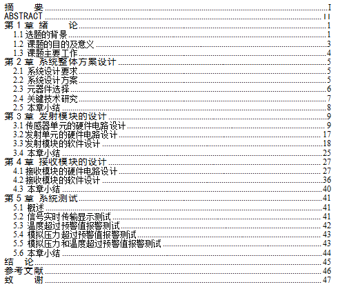 [关键词:单片机,胎压监测系统] [热度 ]提示:此毕业设计论文完整版包含【开题报告,任务书,论文】 作品编号:clgc0241,word全文:50页,合计:19000字 |