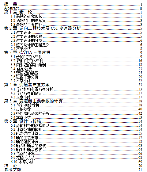 本车辆工程毕业设计论文作品由 毕业论文设计参考 [http://www.qflunwen.com] 征集整理——基于逆向工程的C51变速器设计(开题报告,任务书,论文)!