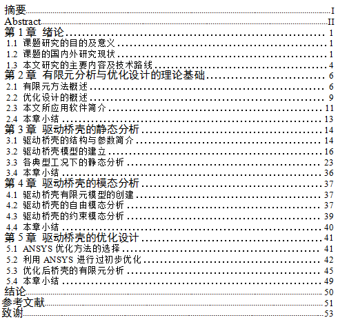 [关键词:有限元,驱动桥壳] [热度 ]| 提示:此毕业设计论文完整版包含【开题报告,论文】 作品编号:clgc0248,word全文:55页,合计:24000字 |