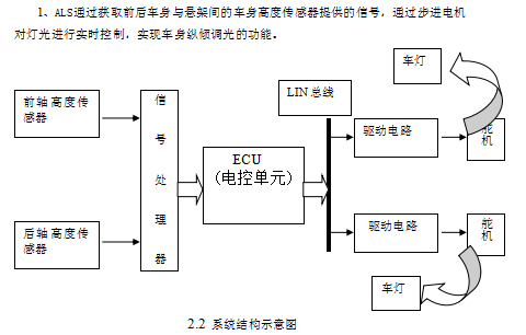 1.广泛参阅国内外汽车智能照明系统的研究、发展及应用现状,设计出可行的汽车自适应照明系统整体架构并作出相应的需求分析及可行性分析。