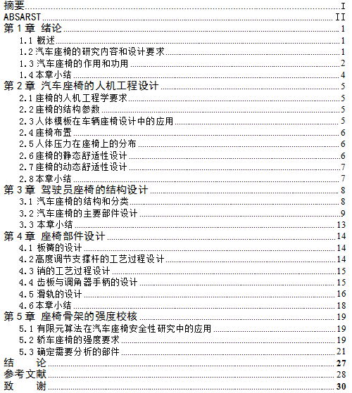 [关键词:轿车,驾驶员,座椅设计] [热度 ]| 提示:此毕业设计论文完整版包含【开题报告,论文,CAD图纸】 作品编号:clgc0317,word全文:32页,合计:15000字 |