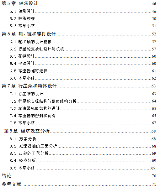本设计充分吸收了该型传动近期的设计资料,广泛采用了较先进的设计计算方法和新的国家标准。本设计力求简明、系统、实用,坚持理论与实际相结合、设计与计算相结合、一般传动与新型传动相结合。在结构布置合理的情况下,其传动效率可达91-94%。运动平稳、抗冲击和抗振动的能力较强。在发展方向上,一方面加速了多级行星减速器在车辆上的应用,另一方面逐步为电力等可再生能源驱动代替传统的正在枯竭的石油资源驱动的汽油、柴油发动机打下基础。
