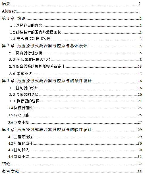 本车辆工程毕业设计论文作品由 毕业论文设计参考 [http://www.qflunwen.com] 征集整理——液压操纵式离合器电子线控系统设计(开题报告,论文,CAD图纸)!