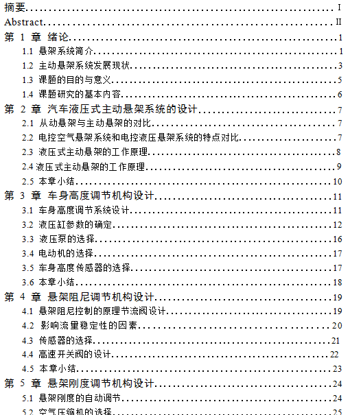 本车辆工程毕业设计论文作品由 毕业论文设计参考 [http://www.qflunwen.com] 征集整理——越野车液压主动悬架系统设计(开题报告,论文,CAD图纸)!
