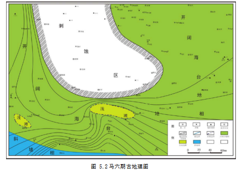 (3)在全面进行单剖面、单井微相分析的基础上,查明了研究区中下奥陶统的沉积相类型及其特征。共识别出4种相、10种亚相、23种微相,对其特征进行了系统论述。在研究了马五、马六至平凉各组段的沉积相展布与演化的基础上,编绘的一套沉积相平面图直观地展现出各时期的古地理面貌及相展布。